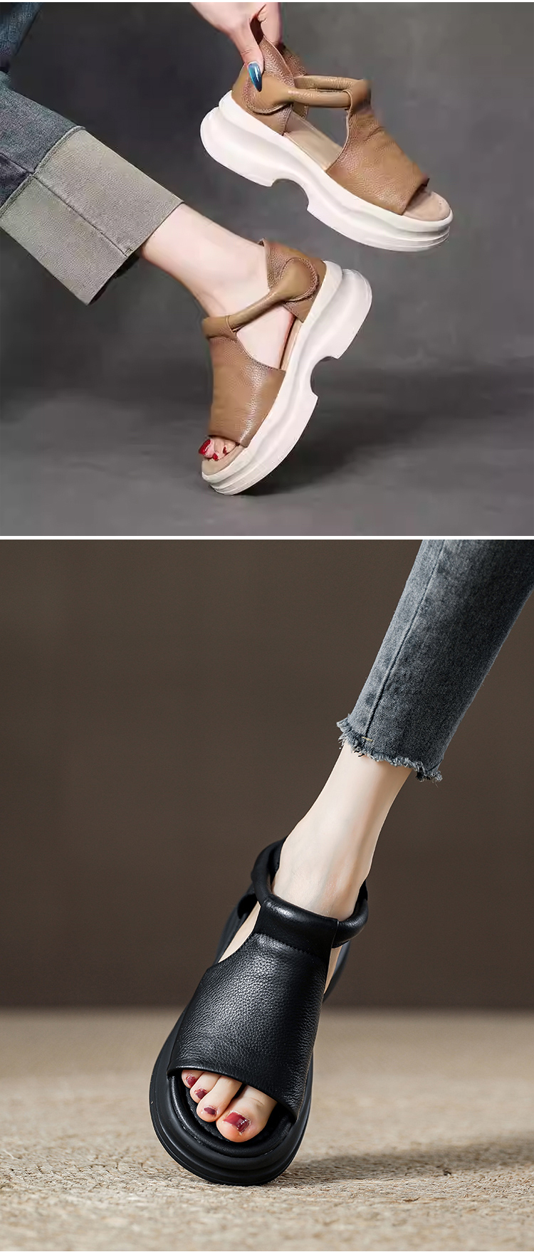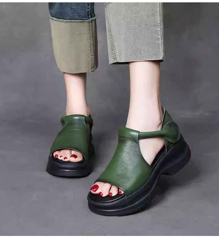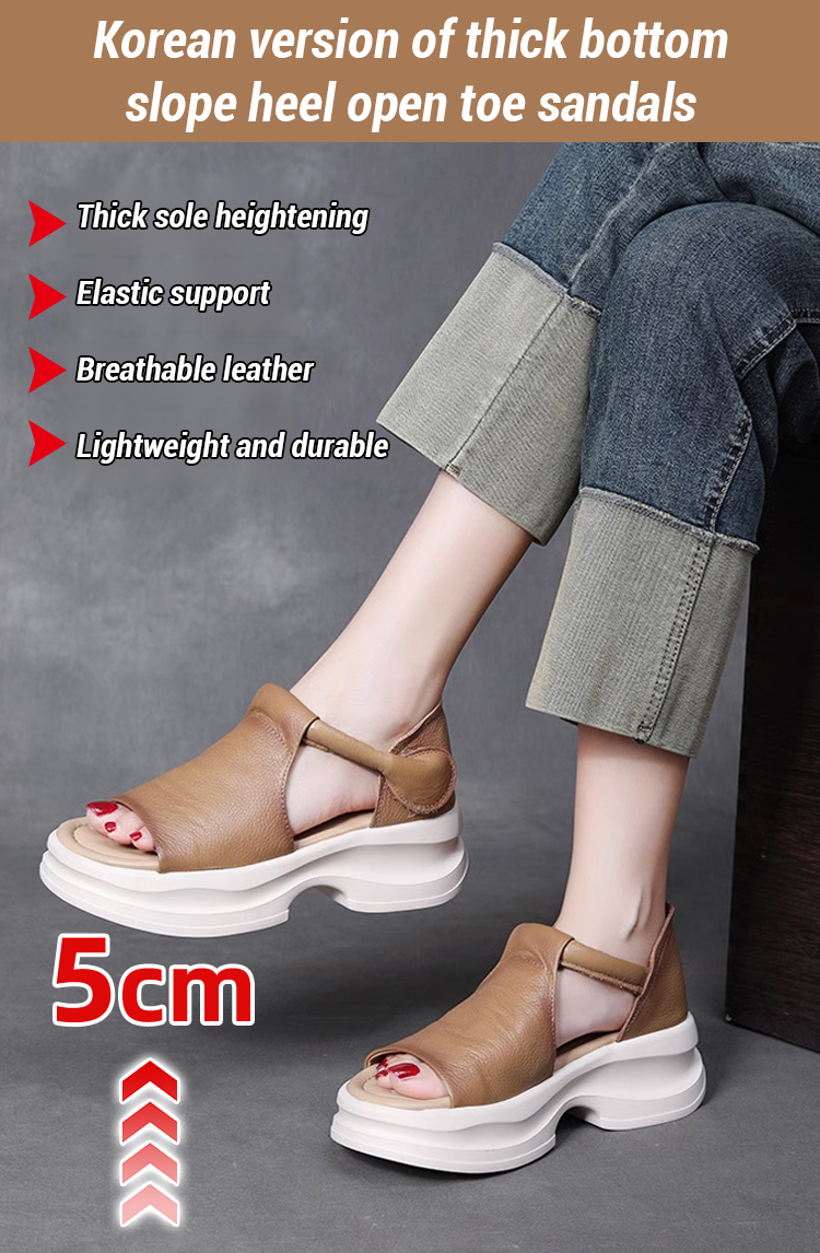 Korean version of thick bottom slope heel open toe sandals