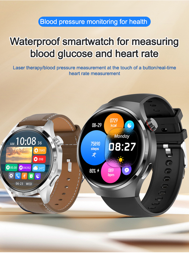 Waterproof smartwatch with blood glucose and heart rate monitoring